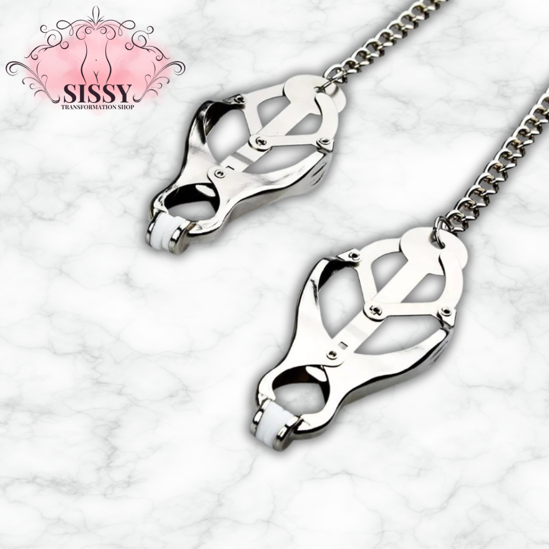 Ces pinces à mamelon au design papillon allient esthétique délicate et stimulation intense, pour les amateurs de jeux sensuels où la douleur se mêle au désir.